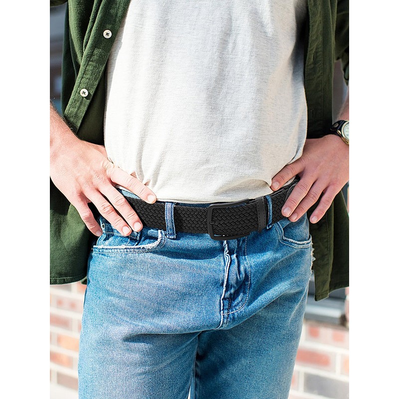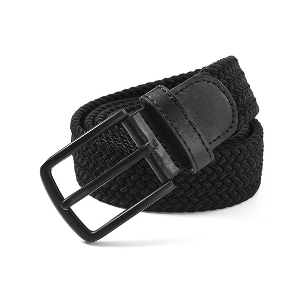 Ymmchy Men's Elastic Fabric Belt, Braided Stretch Belt, Stretchy Belt, Braided Belt, Width 3.5 cm, black
