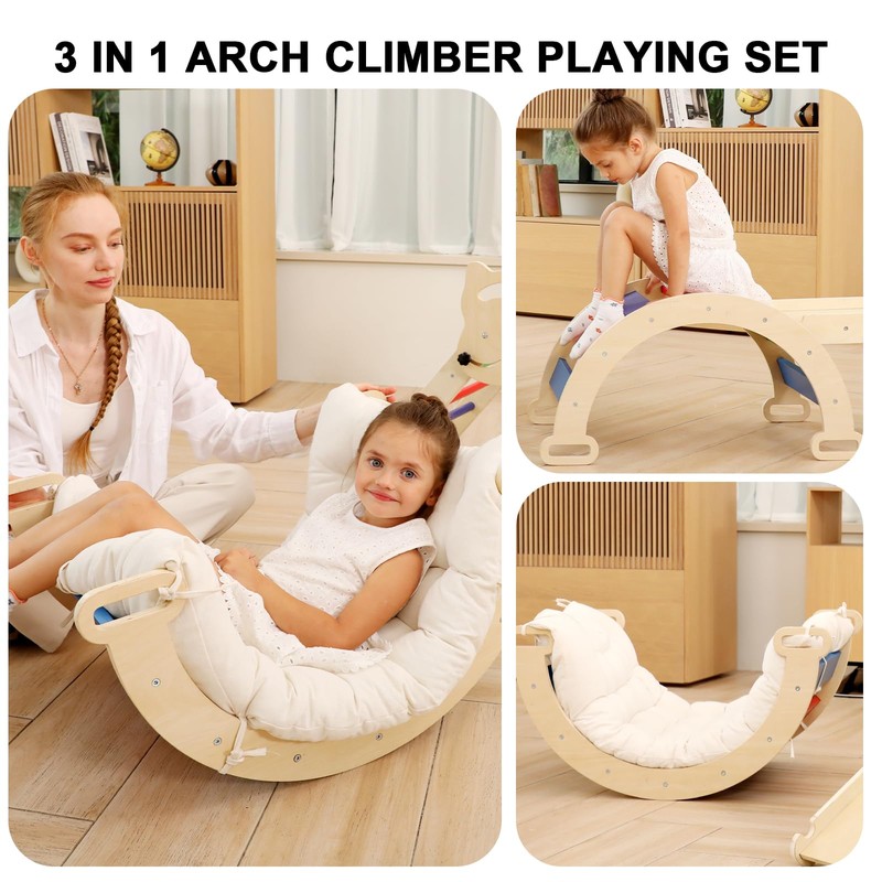 - ๐Comfy Cushion & Well-Made Details: Birthday gift Climbing Arch with Pillow is designed for the baby to have fun and development. We use 100% natural cotton fabric that is skin-friendly, hypoallergenic and breathable. Natural cotton is highly pleasant and gentle to touch for better plays.This pillow, which will fit perfectly with Rocker or/and Arch, will make your children feel comfortable and safe while swinging.