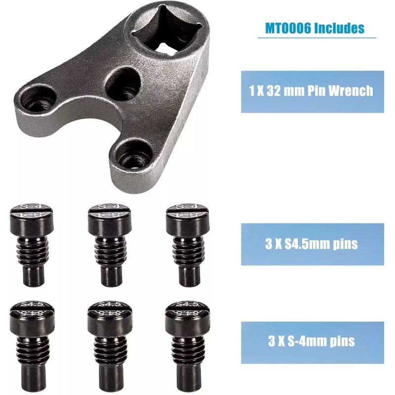 REPLACE OEM -- ①Seal kit 115225FS. ②MT0006 wrench OEM# YB-06175-1A. Our pin wrench has a 180 ft-lb MIN Pin Strength. Comes with 6 removable, 4mm pins.