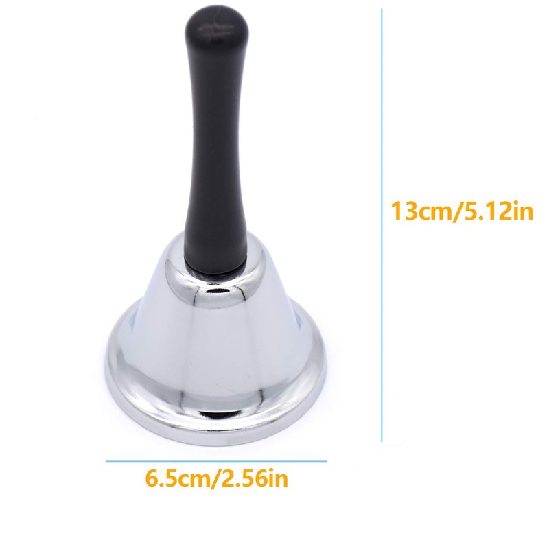 - Clear and loud sound: This hand bell is made of stainless steel and black handle, small and lightweight, classic design. It emits sound due to the impact of the metal ball and the inner wall. The larger the shaking, the louder the sound.