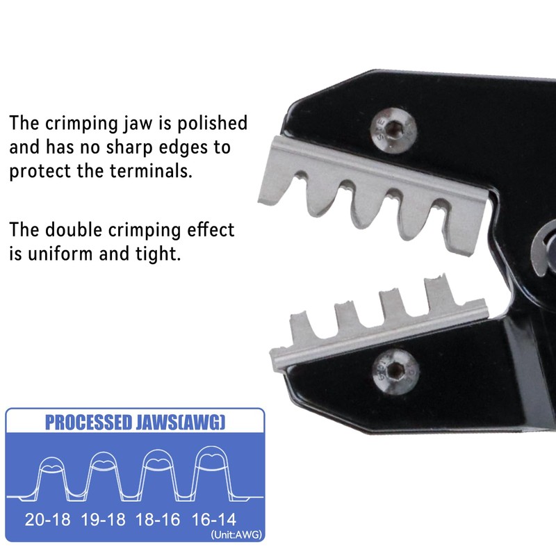 • 【Crimper Type】This deutsch crimp tool is suitable for crimping 16# and 20# open barrel pins/ terminals for AWG 20-14.