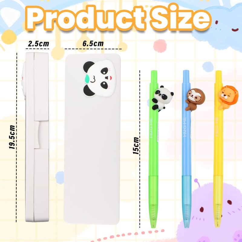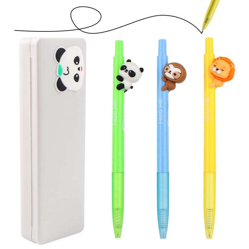 YnewL Cute Animal Neutral Pen - Pack of 3 0.5 mm Black Ink, with Bring a Panda Pencil Case - Choose a Cute Design (Lion, Panda, Sloth)