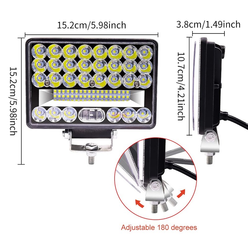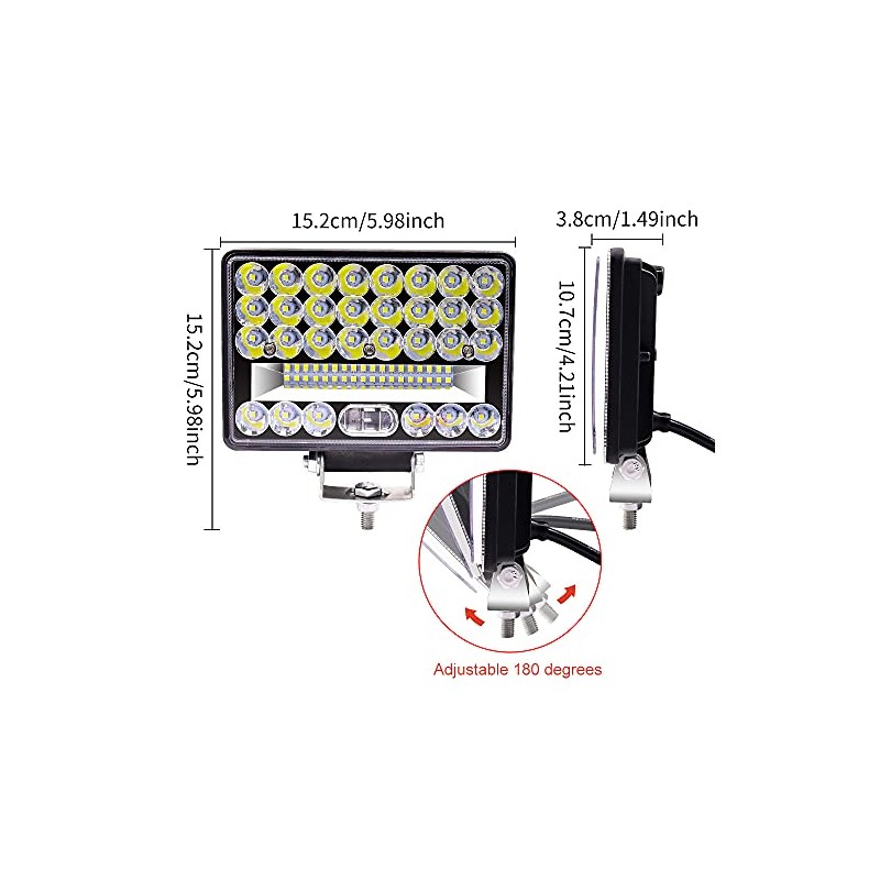 - ★ 【Spot Flood Combo Beam】 Spot and Flood LED Work Light: 5 Inch Square waterproof LED combo lamp (15° spot and 170° flood beam design), 48pcs superior-quality chips emit 6000k cool bright white light, high power 144W, 7200LM, effectively light on your road in the darkness. Wider and longer illumination distance provide a very broader visibility for you.