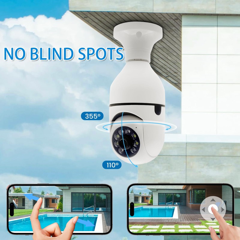 • 【1080p Resolution & Color Night Vision】With 1080p resolution, The light bulb camera provide a clear picture for you.You can see the picture detail easily.Equipped with 4 infrared lights, the lightbulb camera support color/infrared night vision, provides you with high-definition images even at night.