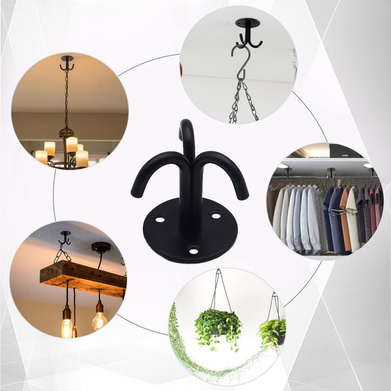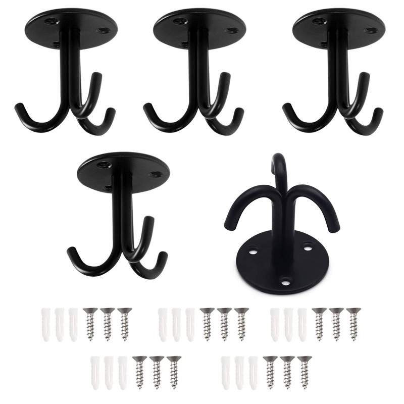 YNHJQP 5 pieces ceiling hooks, black, stainless steel hooks with triple hooks, heavy-duty ceiling hooks, ceiling hooks with screws, for hanging chandeliers, ceiling fans, swings, etc