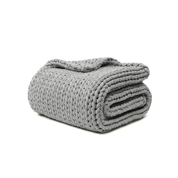 YnM 100% Cotton Weighted Blanket, Handmade Chunky Knitted Throw, No fillers Design, Soft and Breathable, Machine Washable Bed Blanket for Sleep or Home Decor (Lighte Grey, 48x72 Inch, 20lbs)