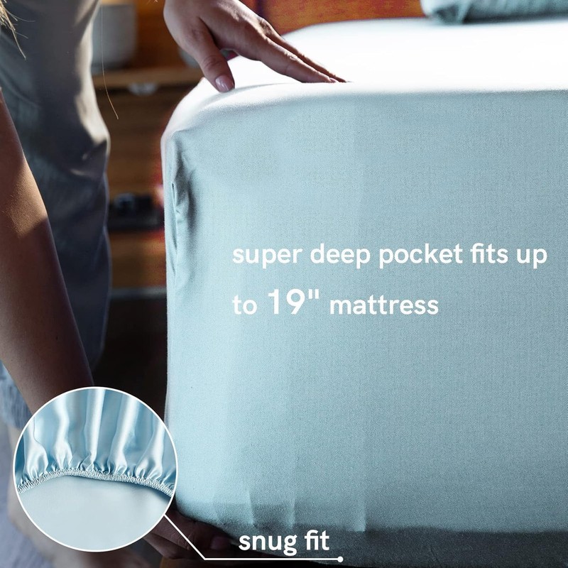 • [Snug Fit] It has a 17-inch deep pocketed design that fits up to a 19-inch mattress, and no matter how much you toss and turn, the bed sheet will not come off or slide off the mattress