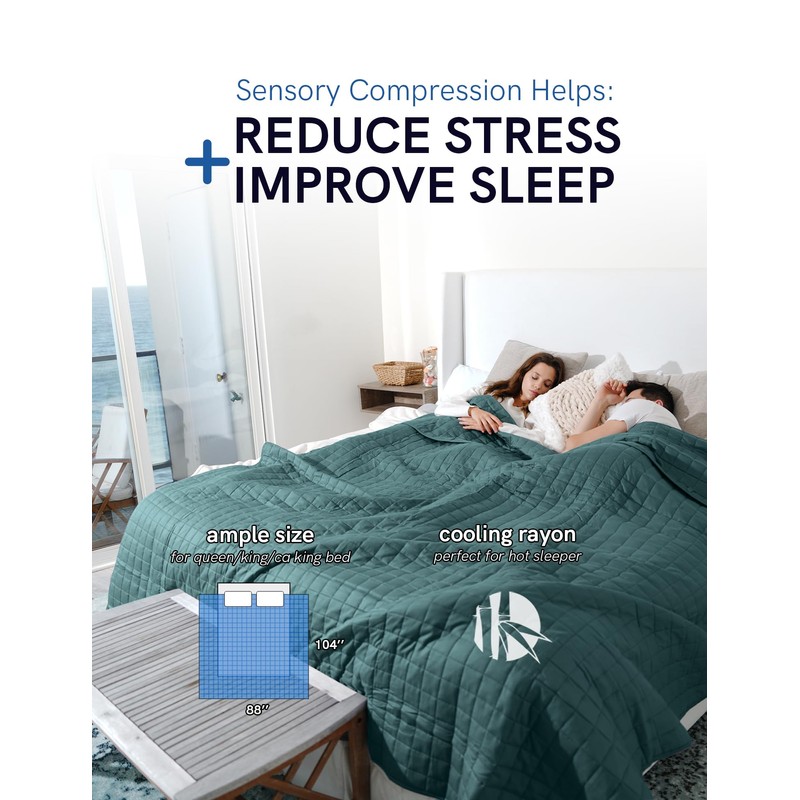 - [Innovative Design] The 7-layer system design adapts to the curve of your body for optimal comfort and the 2x2-inch smallest sections allow for more equitable weight distribution. It includes more glass beads and less fiberfill for enhanced temperature regulation. In addition, a three-dimensional lock bead stitching method prevents leaking of beads. It has the finest stitching (0.25mm per stitch) to avoid movement of weight between compartments. All of these attributes make it a superb blanket.