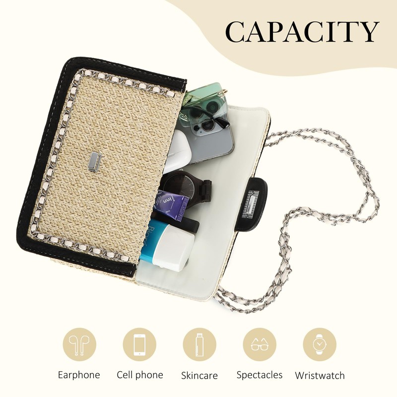 - Stylish design: This women's square bag features a unique straw technique and a metallic leather chain that combines elegance and modernity, ideal for elevating your look.