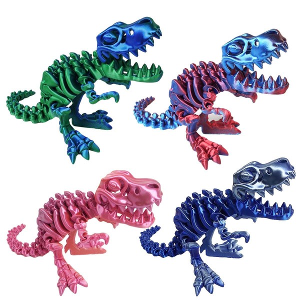 YNTOXIN Small 4PCS 6" 3D Printed Dinosaur, Articulated Dinosaur Fidget Toy, Flexible Pearly Sheen Tyrannosaurus Home Office Decor Desk Toy Small B