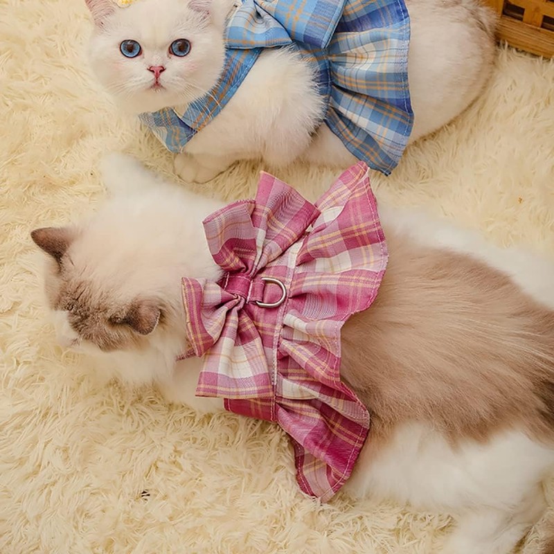 YOASONEK Dog Harness, Cat Harness, Cute, Checkered Pattern, Bowknot Mesh, Breathable, Vest, Dog Clothes, Small Dogs and Cats, Costume, Costume, Costume, Torso Harness, Stylish, Ribbon, Easy to Put on