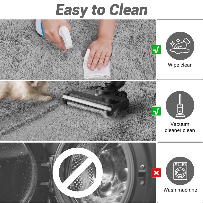 3. After cleaning, please fully air dry the rugs, to ensure the fluffy area rug, do not use dryer to dry and do not isolate after washing.