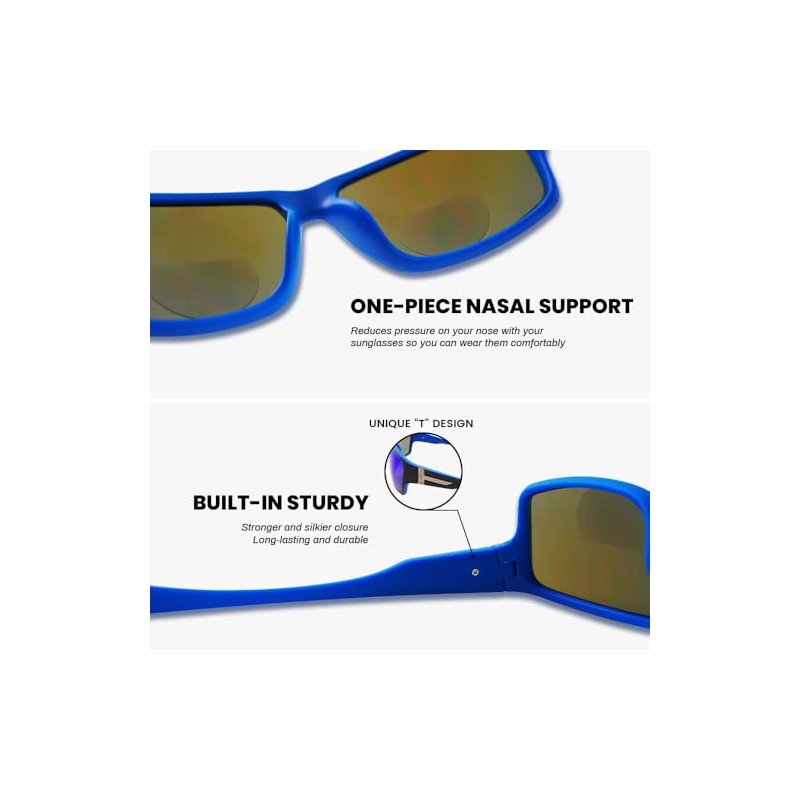 - Wrap Around Design for Full Coverage: The wrap around frame blocks side light, UV rays, wind, and dust, staying secure and stable during any activity. Sunglasses with built in readers add convenience for outdoor adventures