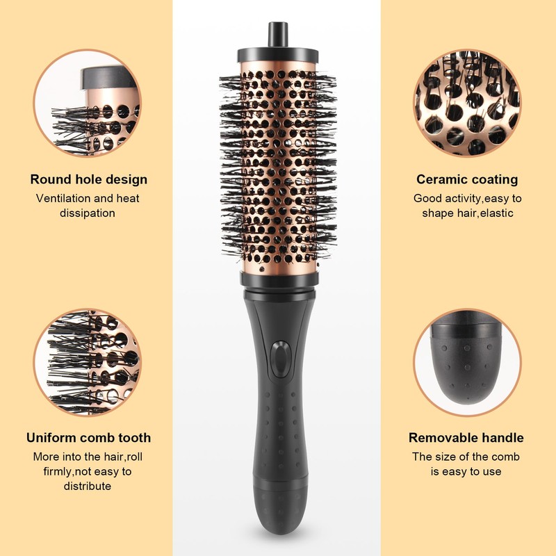 • Aluminum Ceramic Barrel Curler Comb:Ceramic surface makes the distribution of heat uniform, protecting your hair from damaged. It can release anion to neutralize cation which makes your hair fluffy. Aluminium tube inside, make it heat transfer quickly, help you create hair styling.