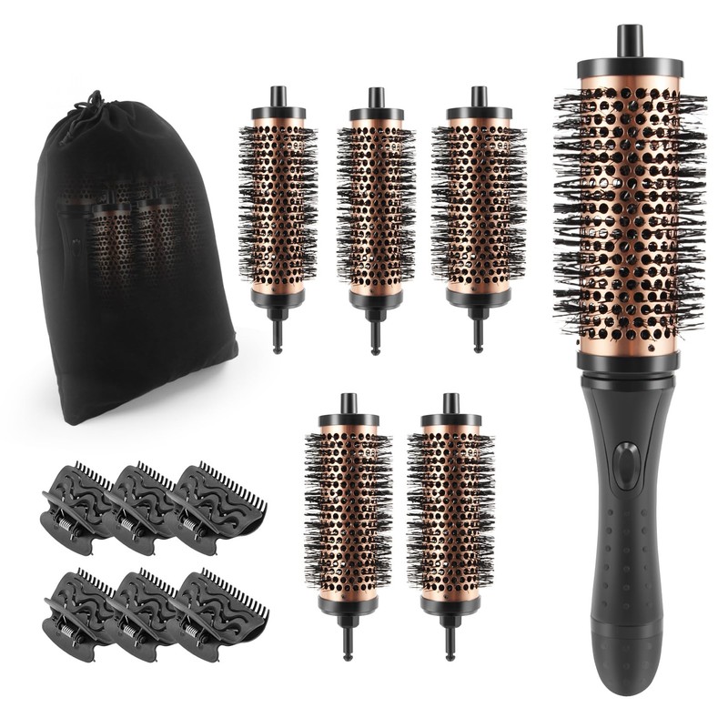 • What you get: Our round hairbrush set includes 6 positioning clips, 6 curling barrels, 1 handle, and 1 storage bag for easy storage and organization after use.
