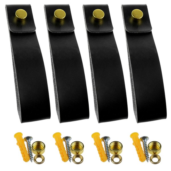 Yocimango 4pcs Leather Wall Lanyard Artificial Leather Suspender Hanger Wall-Mounted Leather Hook for Bathroom Kitchen Bedroom Wall (Black)-4pcs