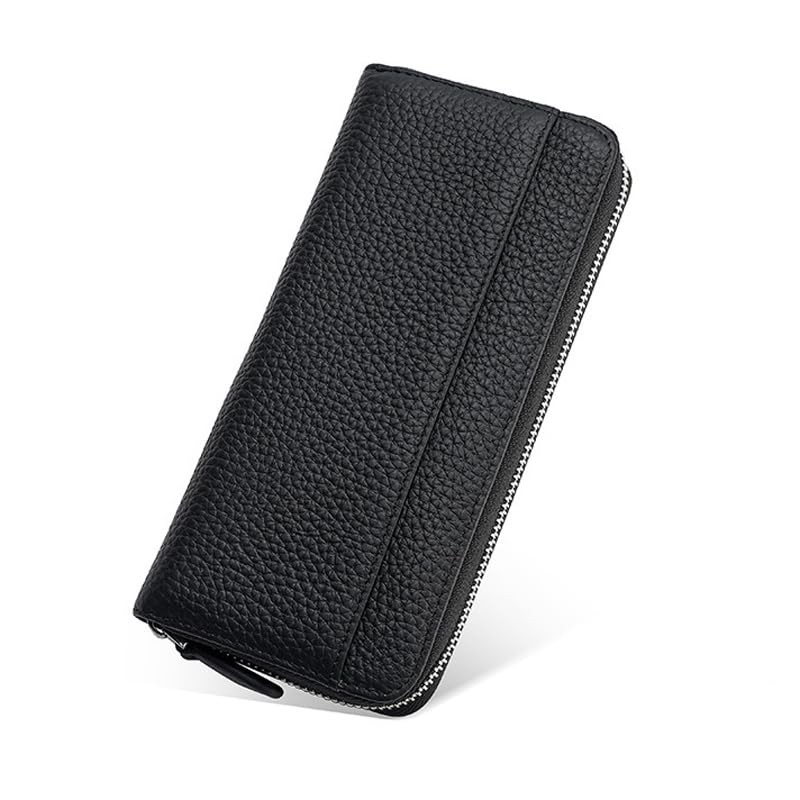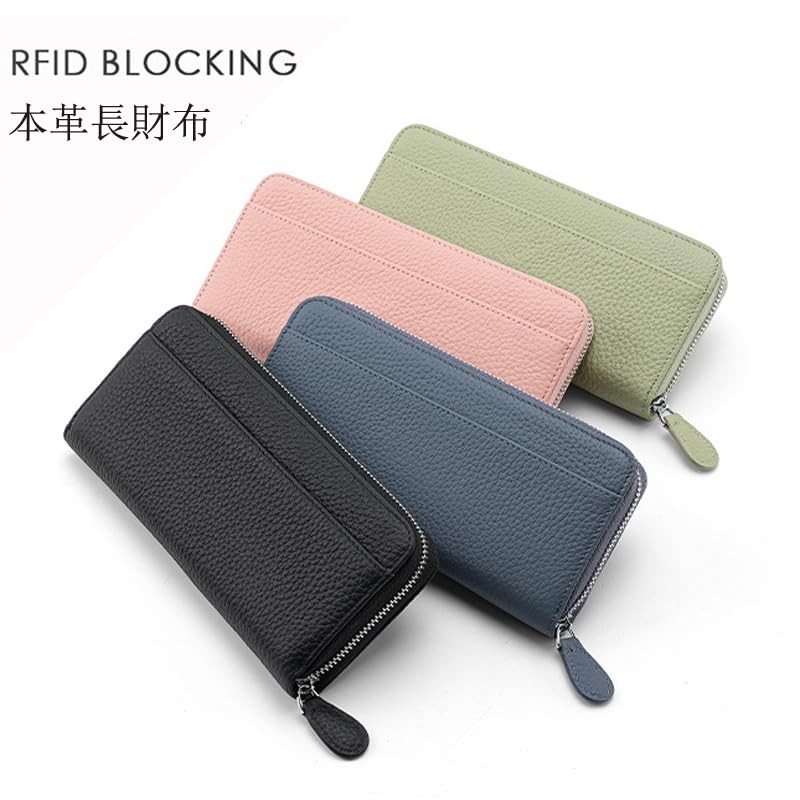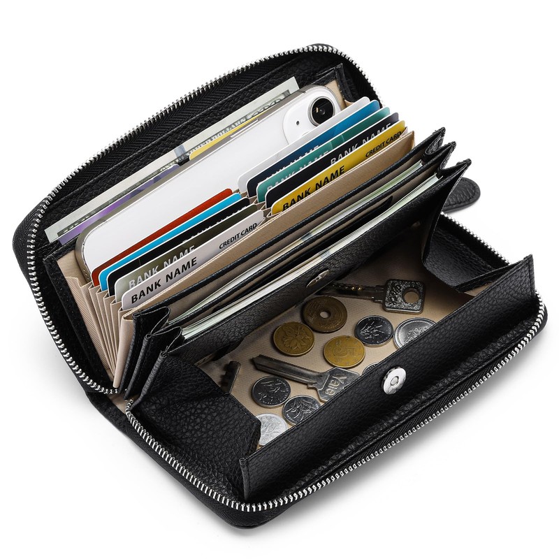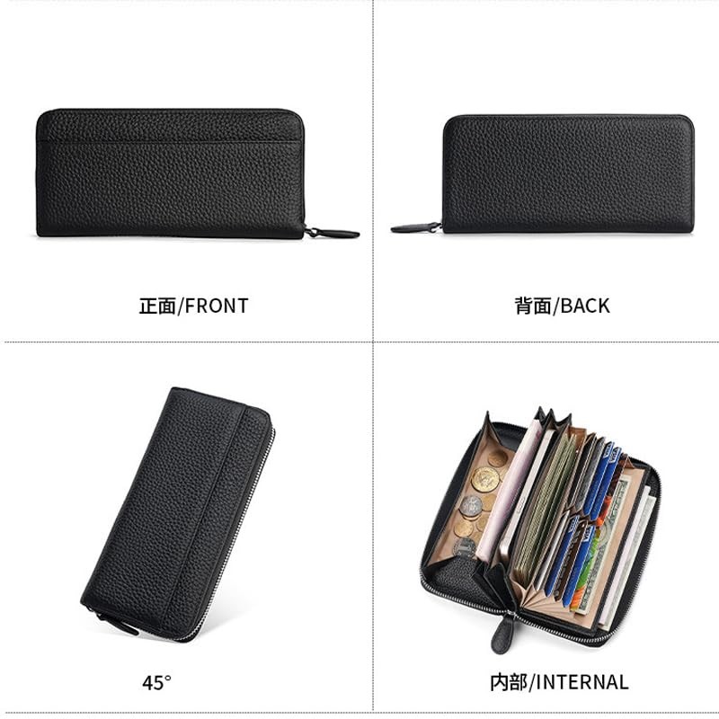 Yocipa Genuine Leather Wallet, Women's, Round Zipper, Long Wallet, Large Capacity, Card Case, Multi-functional Wallet, Prevents Skimming, Popular, Black