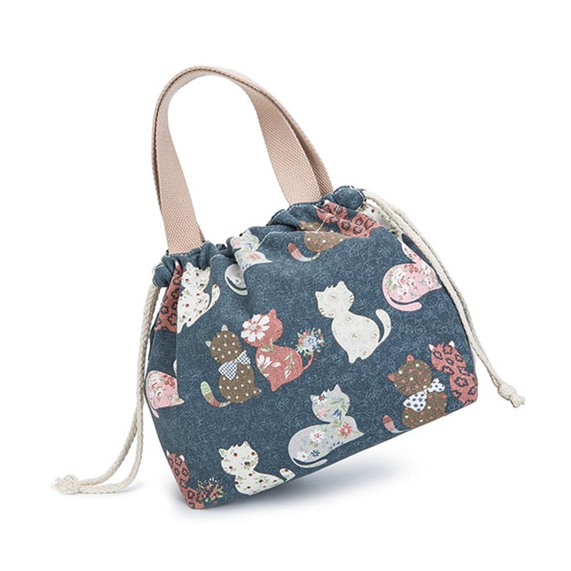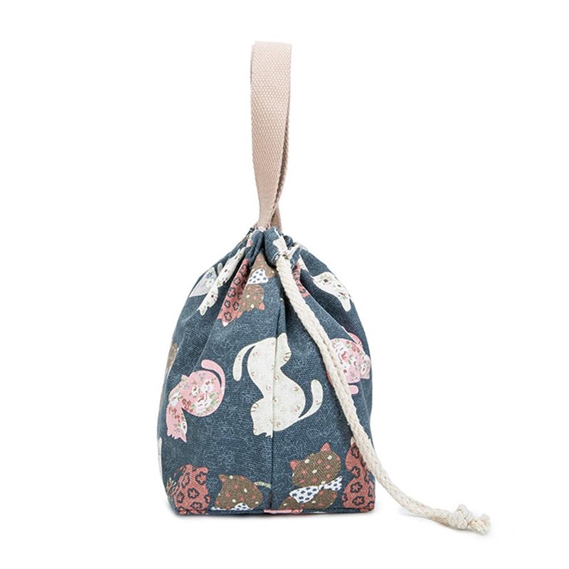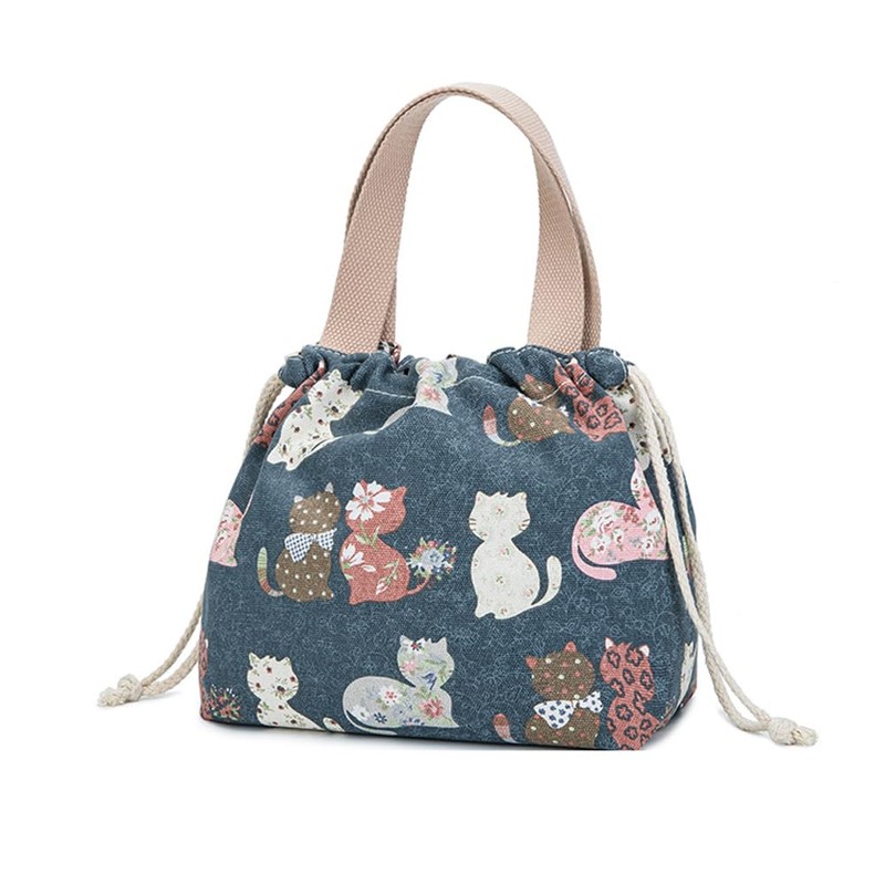 Yocipa Lunch Bag, Cute Cat Pattern, Drawstring Bag, Multi-functional Canvas Drawstring Bag, Simple Handbag, Cosmetic Pouch, Mini, Portable Lunch Bag, Lightweight, Cat