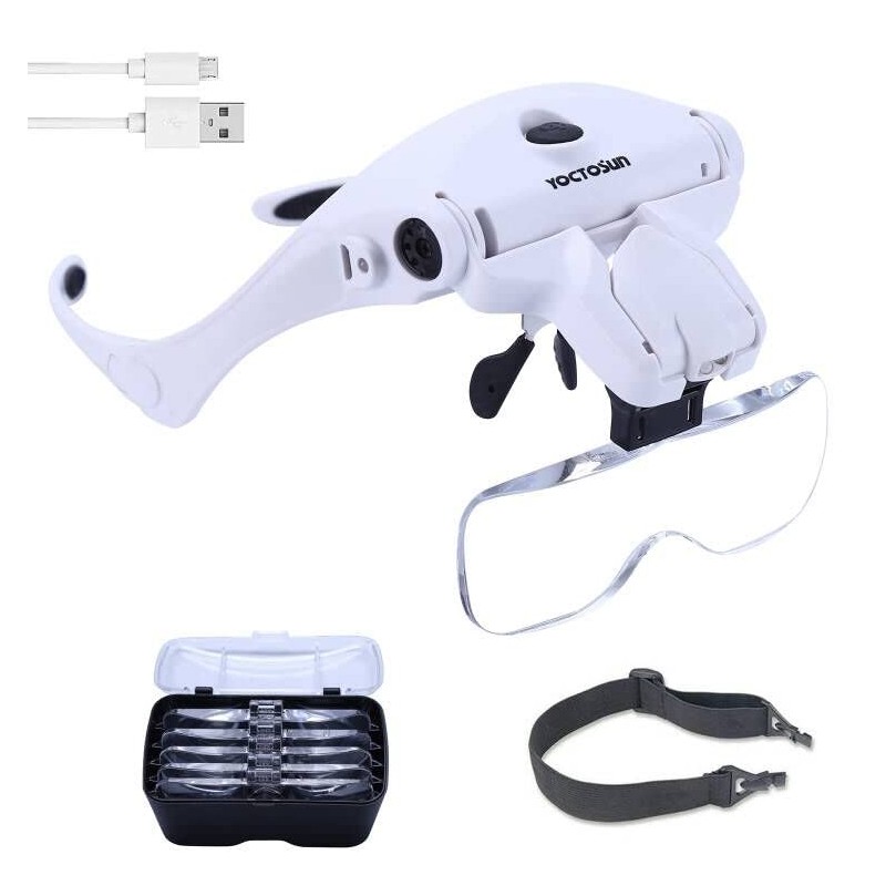 YOCTOSUN LED Head Magnifier, Rechargeable Hands Free Headband Magnifying Glasses with 2 Led, Professional Jeweler's Loupe Light Bracket and Headband are Interchangeable