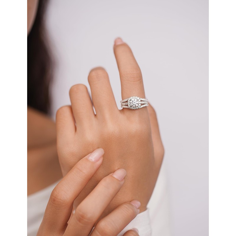 - Half eternity band ring design made the ring wrap more versatile than traditional designs, allowing it to be worn alone or paired with main stone rings of various styles and sizes for stacked ring looks