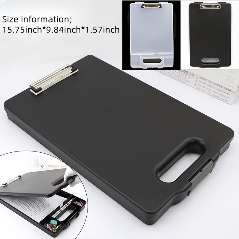 - 【Storage Function】The clipboard measures 15.75 x 9.8 x 1.5 inches, and the durable clip provides a firm clamping force to ensure the safety of papers and documents without leaving marks on the paper. The metal clip securely fixes the paper for quick and easy access, and there is a hole on the back of the clipboard so you can hang it anywhere you want.