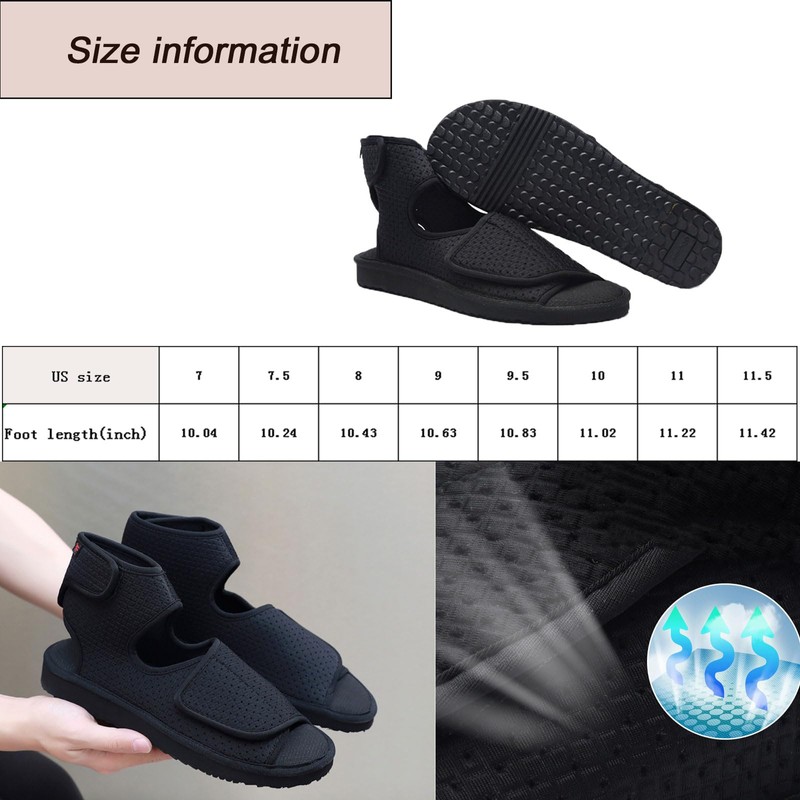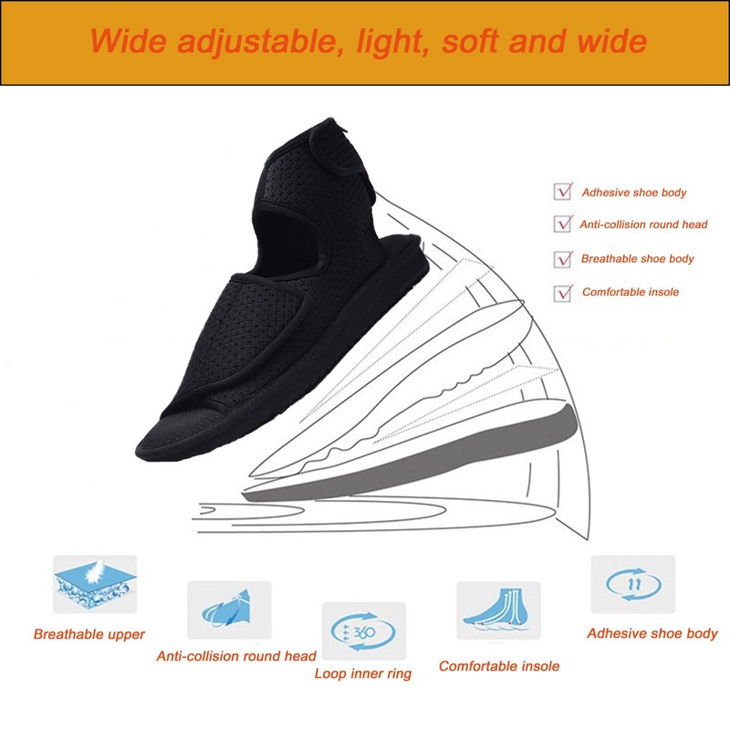 - Designed for wide and swollen feet: open heel, non-slip insole, Velcro upper, provide maximum comfort and pain relief for people with wide or swollen feet. Improve the comfort of wearing and walking, and prevent toes from being injured due to squeezing.