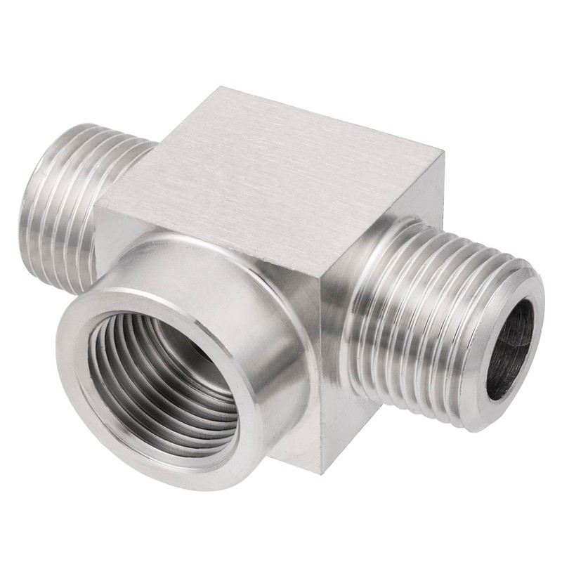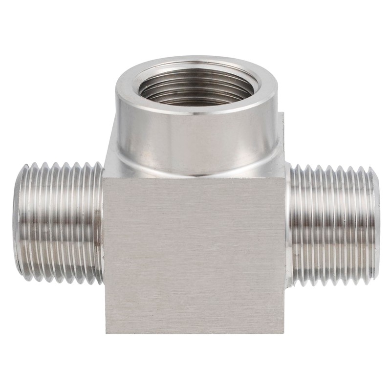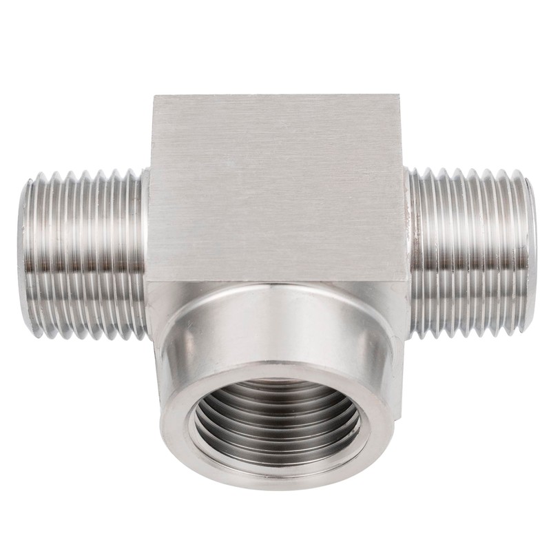 - Male NPT threads on the main run and female NPT threads on the branch for connecting three threaded pipes