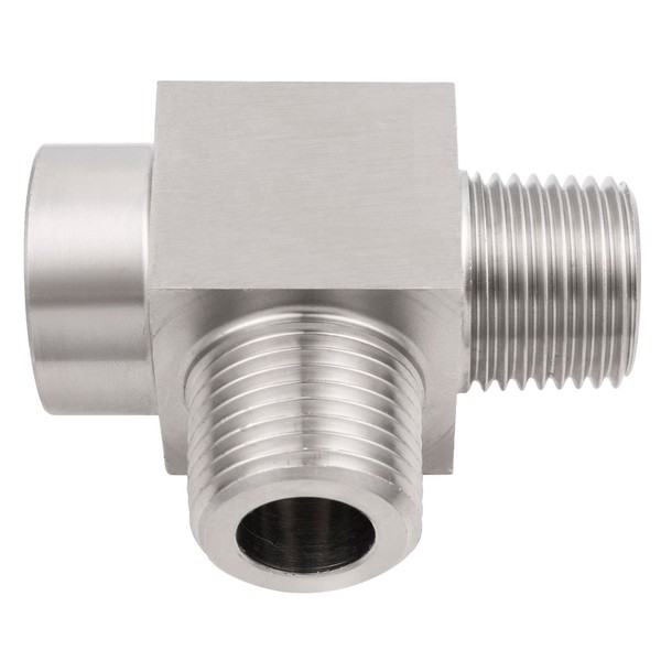 Yoebor Stainless Steel 304 Pipe Fitting Female Run Tee, 3/8" NPT Female x 3/8" NPT Male x 3/8" NPT Male 3-way T-fitting, 1pc