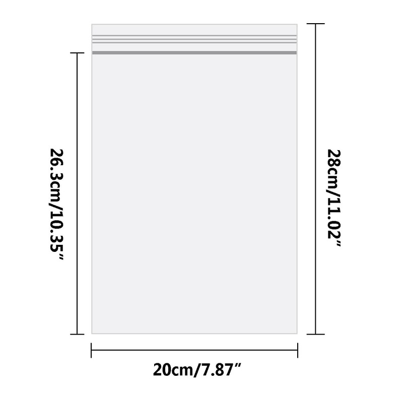 - BAG SIZE : Plastic Bag width X height (20x28cm), area under seal closure part, you do have 20cm X 26.3cm room to store your items, thickness per side 0.06mm. Good quality, easy to seal, durable.