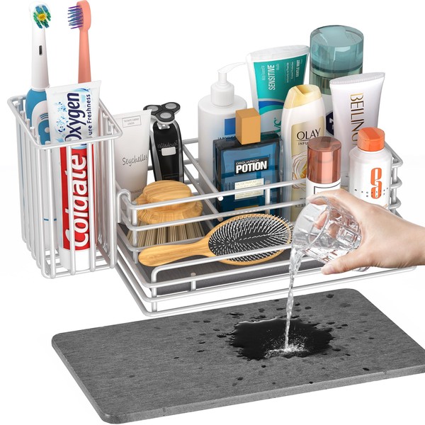 Yofidra Toothbrush & Toothpaste Holder with Stone Drying Mat: Quick Stone Sponge Holder & Toothpaste Dispenser, Sink Caddy Kitchen Bathroom Countertop Organizer Accessories 9.5" X 5.5" X 5.7"