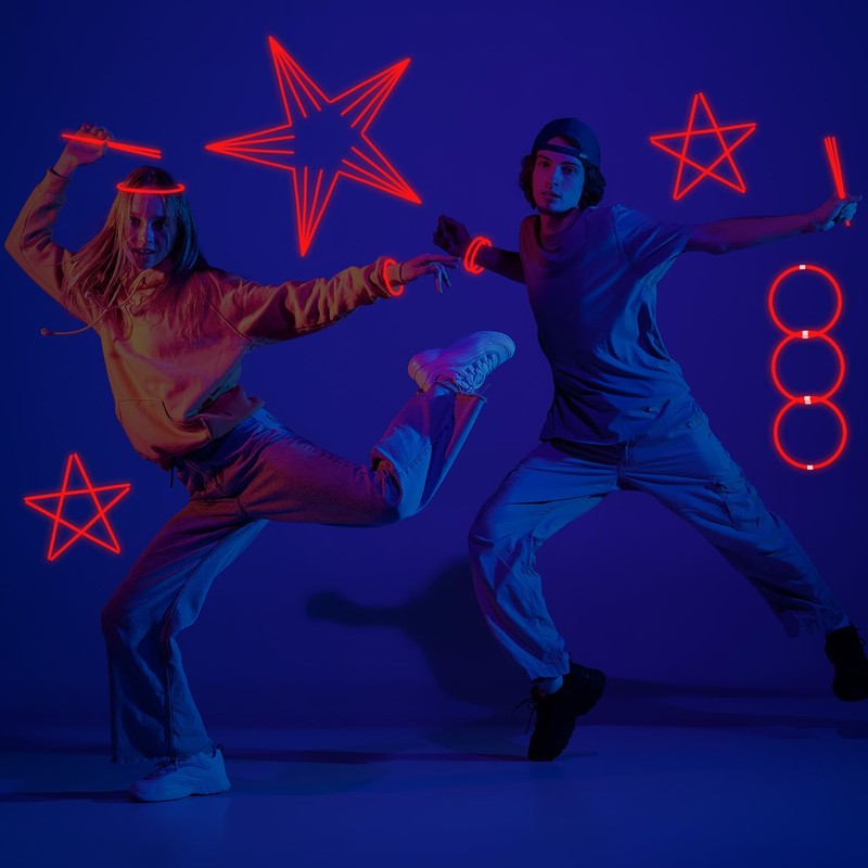 - Glow in the Dark Party Supplies: You will receive 50 pieces of 8 inches red glow sticks bracelets,each color individual packed with 50pcs connectors (for making glowing bracelets or necklace),add more fun to your extra special light-up party celebration such as New Year,Valentine's Day,Easter,4th of July ,birthday celebration,pool party or wedding