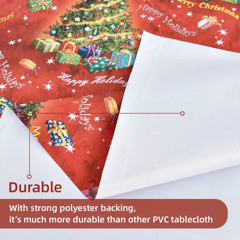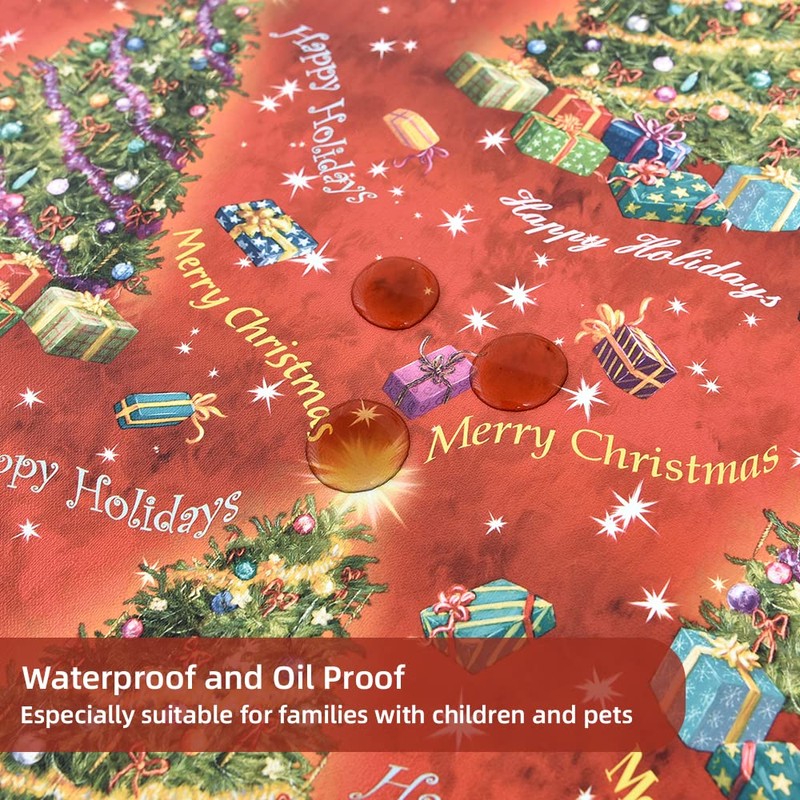 - Xmas Tablecloth Material--Thickened grade-A PVC xmas tablecloth, which has a better waterproof and oil-proof effect. The xmas table cloth is very easy to clean, just wipe it gently. Effectively protect your dining table. It is also durable and has very good drape