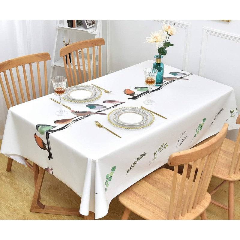 Yofori Table Cloth for Rectangle Table Heavy Duty Vinyl Tablecloth Rectangular Waterproof Plastic Tablecloth Wipeable Outdoor PVC Table Cover for Picnic(Birds, 54'' x 108'')
