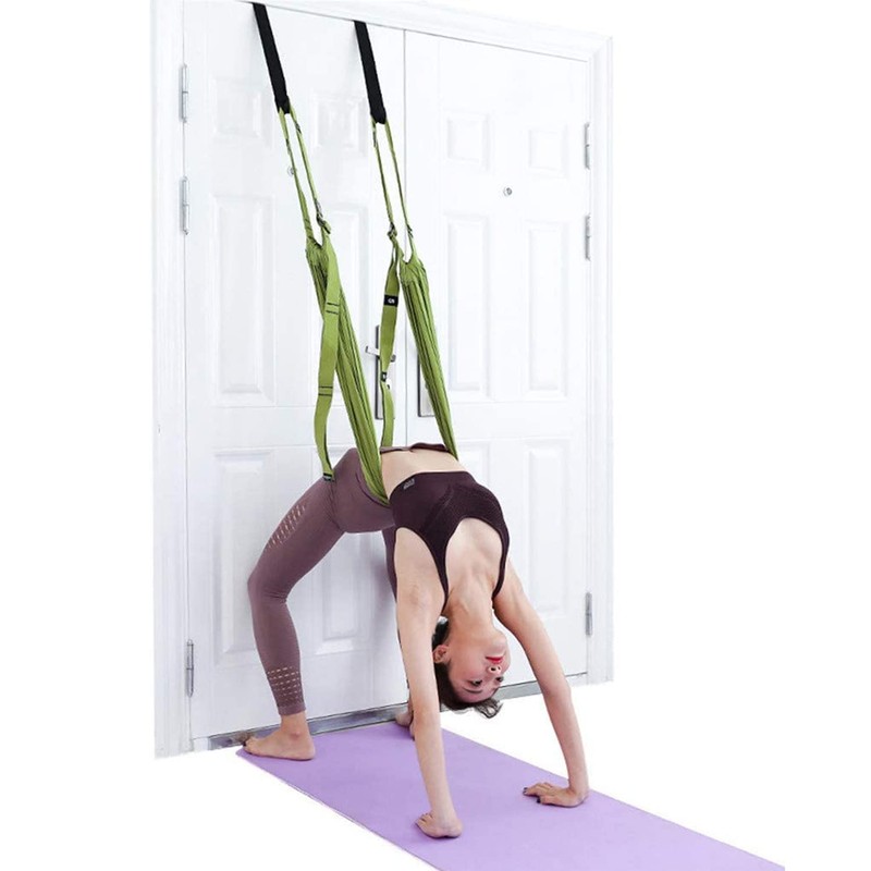 Yoga Stretching Strap, Adjustable Height Leg Stretcher Waist Back Stretch Band, Exercises Door Flexibility Tensile Trainer for Rehab Pilates Dance Splits (Green)