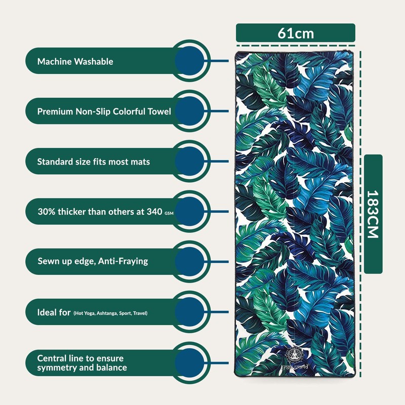 Yoga World Yoga Towel Thick, Soft, Sweat Absorbent, Nonslip Exercise cloth Made with Microfiber Fabric - For Bikram, Pilates, Beach & Home Workout Machine-Wash 72 x 24 inch (Palm Green)