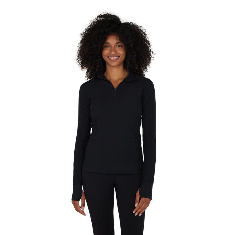Yogalicious Half Zip Lightweight Workout Long Sleeve Athletic Jacket with Front Pockets and Thumbholes - Classic Black - Large
