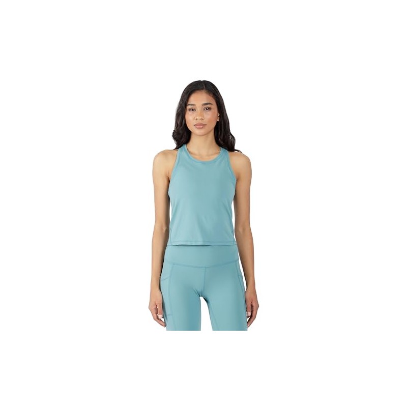 Yogalicious Ultra Soft Lightweight Cropped Racerback Tank Top - Teal - XL