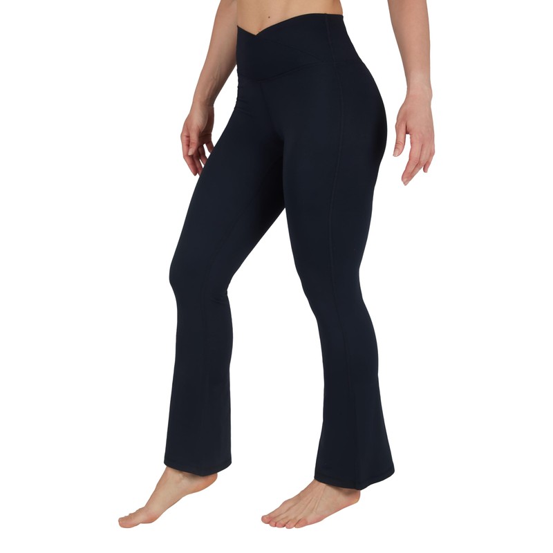 Yogalicious Womens High Waisted Flare Legging Squat Proof Yoga Bootcut Wide Leg Crossover Pant - Black - XL