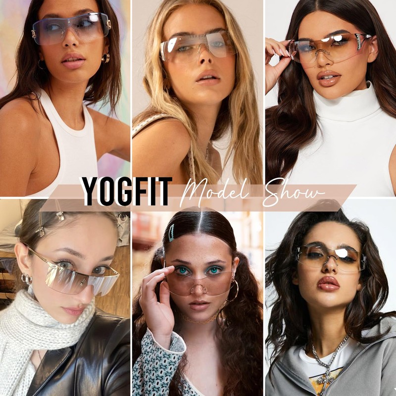 - ☀Stylish rimless design: YOGFIT sunglasses feature a sleek, frameless design with hollowed-out metal temples, offering a unique and fashionable look. Perfect for street fashion and a top choice for trendsetters.