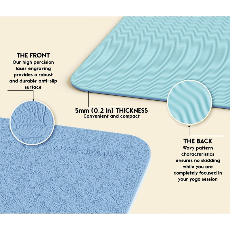 - 🧘🏼 ANTI-SKID DESIGN FOR OPTIMAL PERFORMANCE - Do challenging yoga poses without slipping. Boasting a high-precision laser engraving and a wavy pattern, our gym mat stays firmly in place.