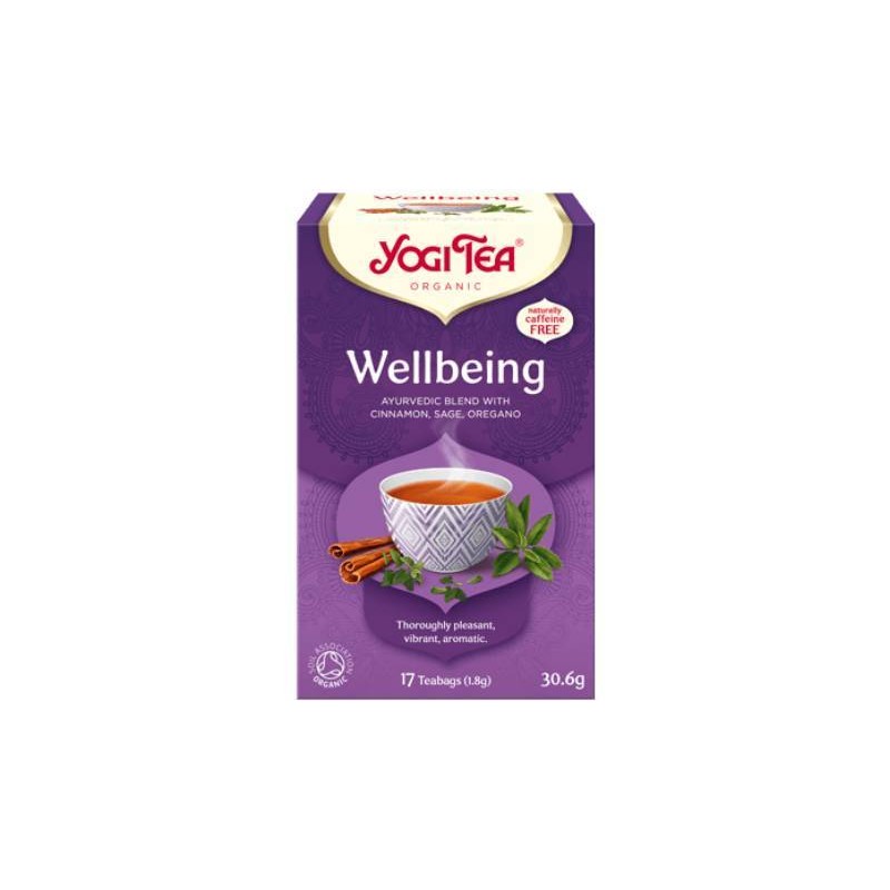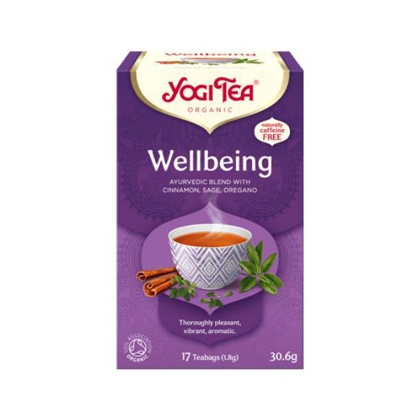Wellbeing begins with the willingness to experience it. This tea guides and accompanies you to a sunny time-out. With warming cinnamon and aromatic sage, YOGI TEA® Wellbeing tastes like Mediterranean-style relaxation. You can taste life itself in lemongrass and oregano, and draw fresh inspiration from a deep sense of well-being!