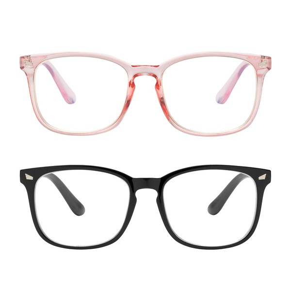 Yogo Vision 2 unidades de anteojos de computadora con bloqueo de luz azul antiocular para pantallas y computadoras, hombres y mujeres, Juego de vidrio rosa y negro transparente., 50 mm