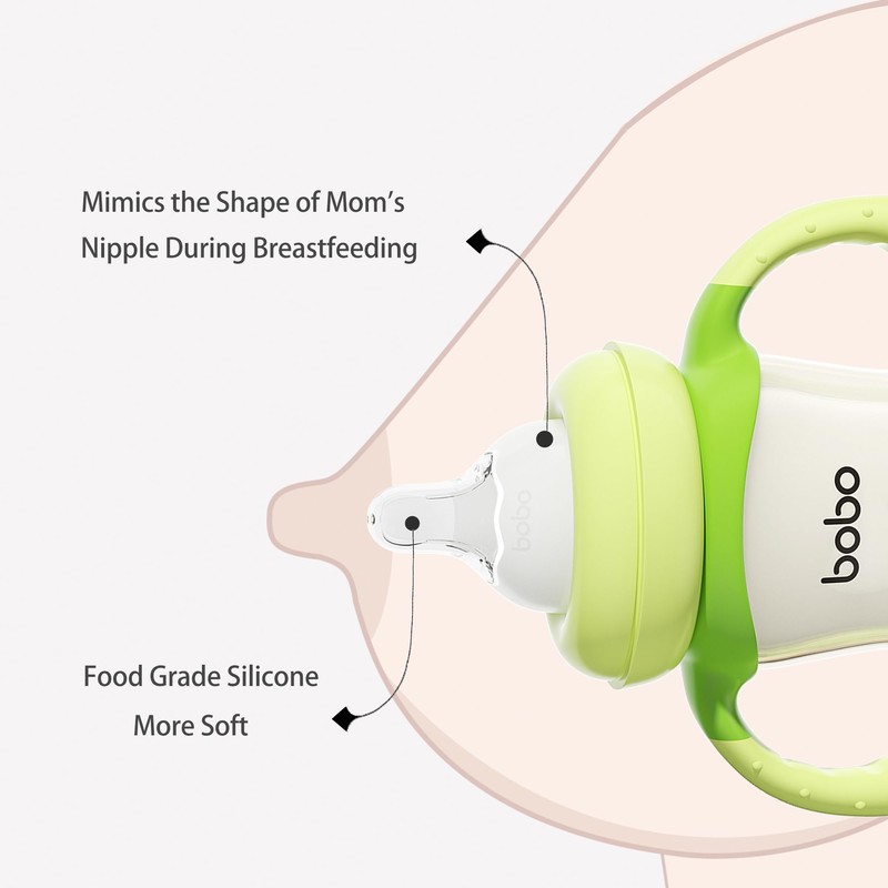 - The bottom of the nipple has intelligent pressure regulating valve, balance internal and external pressure, milk and air separation, to avoid the baby breathing too much air caused by colic flatulence.