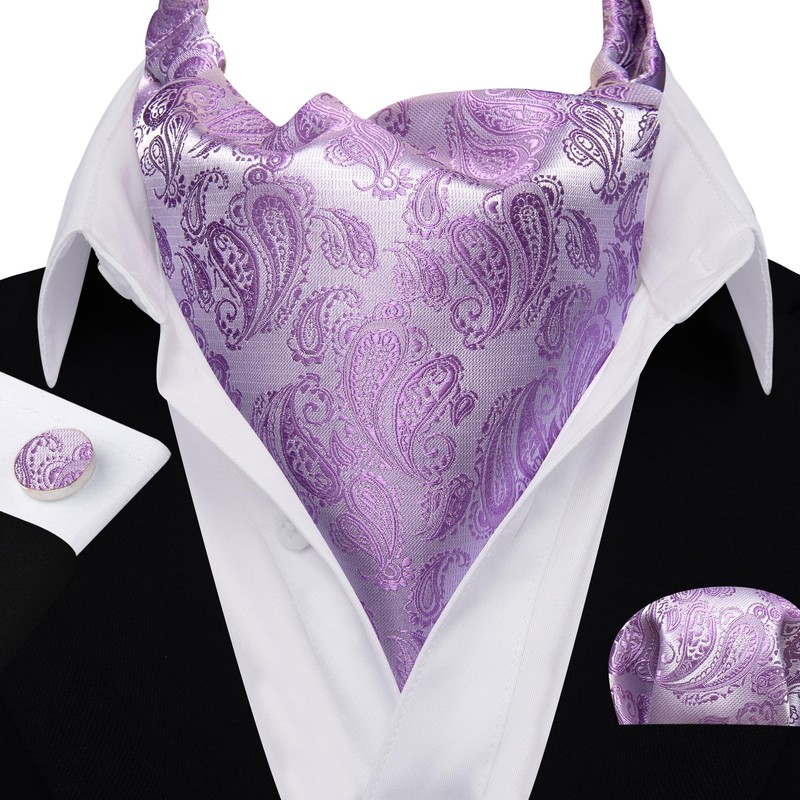 - Paquete: 1 juego de ascot para hombre, pañuelo y gemelos en caja de regalo