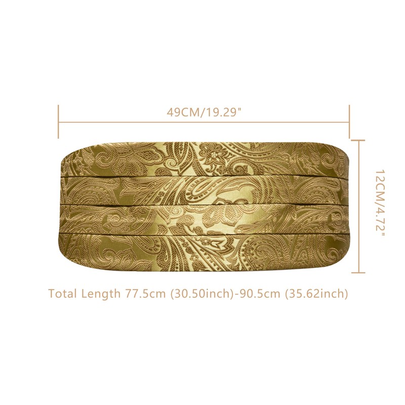 - Size : Cummerbund with 4.72 inch(12cm) width and 30.5-35.62 inch(77.5cm-90.5cm)length; Bowtie Size:4.7*2.4inches(12*6cm); Pocket Square: 9*9inch(23*23cm)