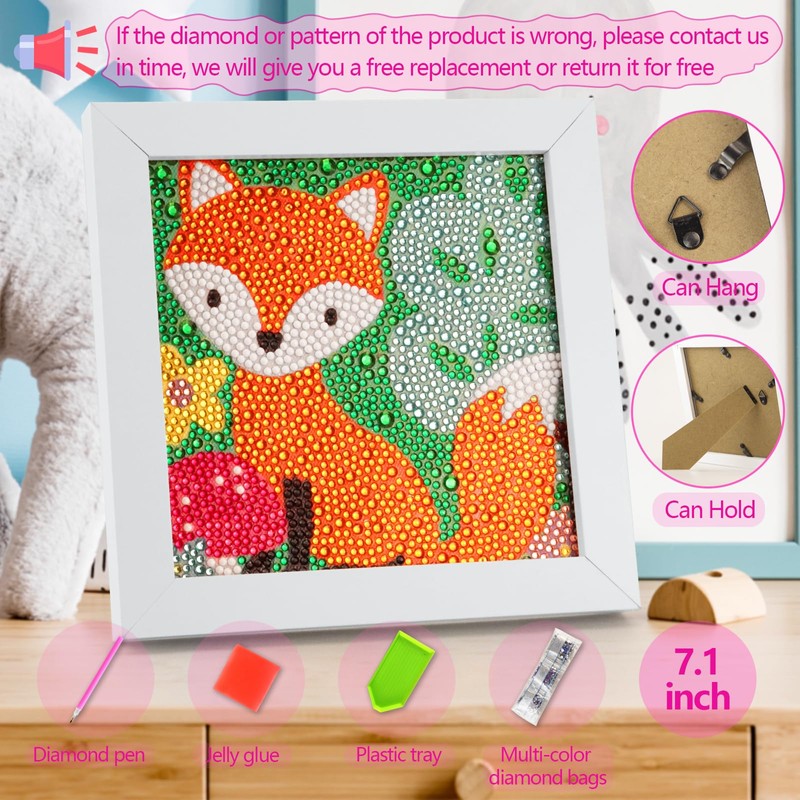 yohuu 5D Diamond Painting Kit for Kids 7.1’’*7.1’’ Wooden Frame Diamond Arts and Crafts for Kids Ages 6-8-10-12 DIY Gem Art Dot Art Gift Diamond Painting by Number Kit Home Wall Decoration