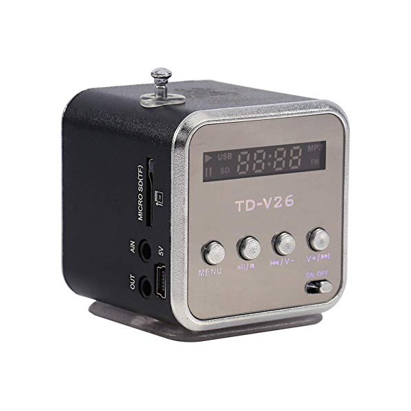 Yoidesu TD-V26 Portable Mini Speaker Music Player FM Radio Battery Powered Mini Digital Display Screen Speaker Music Player for Computer&Cell Phone Support TF Card and U Disk (Black)