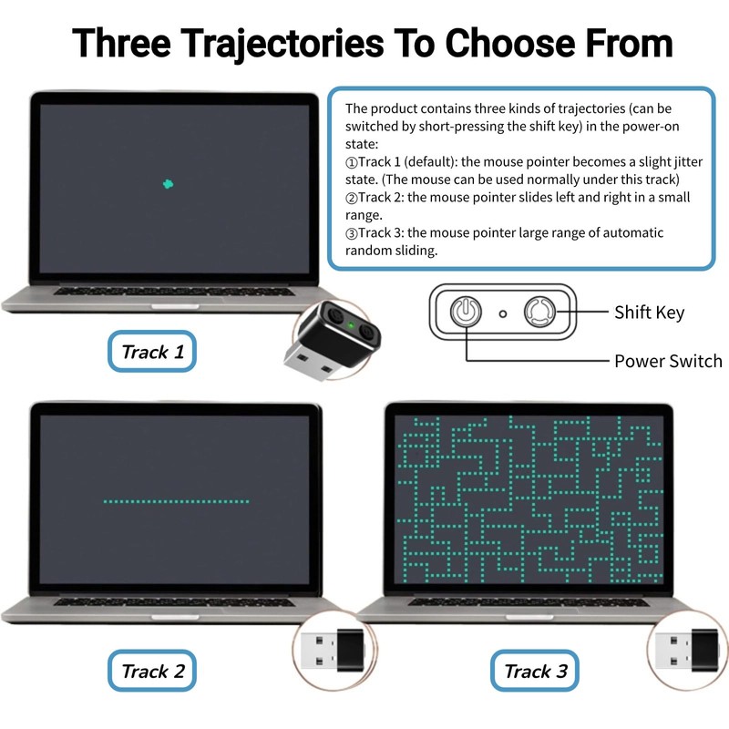 - MOVIMIENTO AUTOMÁTICO: simplemente conecte el agitador del mouse a su puerto USB y mueva automáticamente el cursor para mantener su PC / computadora portátil activa, adecuada para , Lync, Skype, etc. para permanecer en línea.