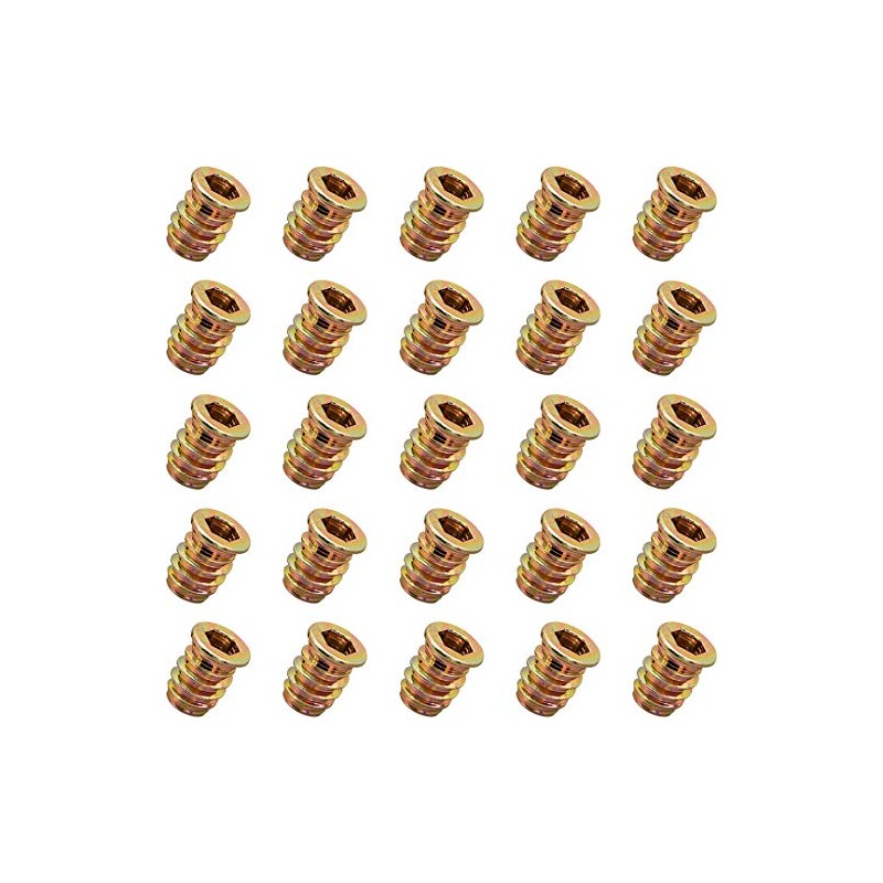 YoiYee Heavy Duty Wood Furniture M6 x 15mm Threaded Insert Nuts Interface Hex Socket Drive Zinc Yellow Passivated - 25pcs