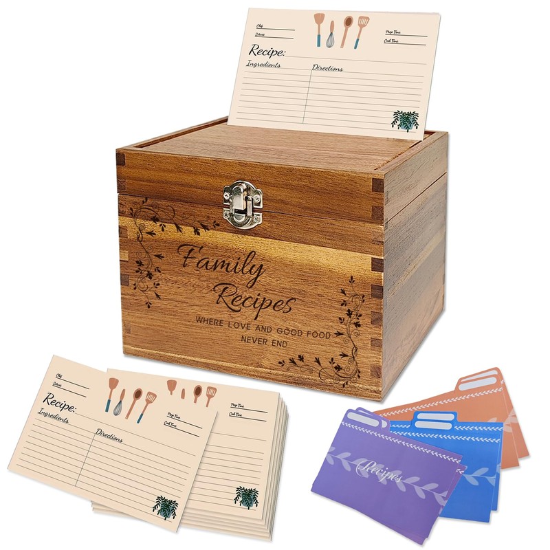 - 【Perfect Gift Idea】 – This recipe box makes a perfect gift for anyone who loves to cook and wants to keep their recipes organized.Whether it's for christmas,birthday,Valentine's Day,weddings,or Mother's Day,it's the perfect way to show your appreciation for their culinary skills.